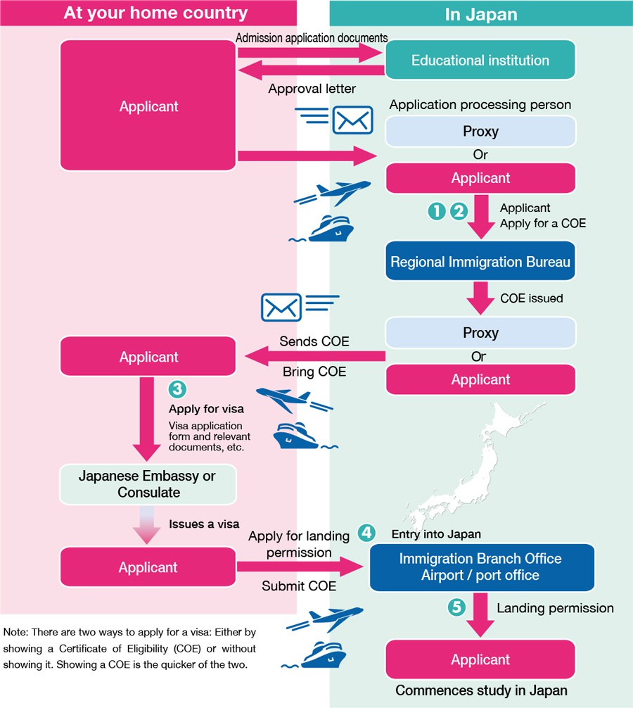 The student visa is granted on the basis of the Certificate of Eligibility. Your prospect language institute in Japan applies for the CoE on your behalf. The Immigration Bureau of Japan assesses the application submitted by the institute and grants the CoE. The Embassy of Japan for Nepal (NOW onward VFS Global) cross-verifies and grants the visa.
